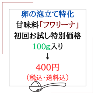 フワリーナは、低糖質なのは当然・さらに 卵の泡立てに特化した低糖質甘味料です。